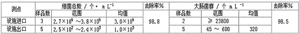 4.2 消毒效果 臭氧的氧化能力僅次于氟,殺菌能力很強(qiáng),與“氯化”法相比,不但能殺滅細(xì)菌,更能有效地殺死病毒和芽孢,除去水中的色、臭、味,對(duì)污水中地有機(jī)物進(jìn)行氧化分解,降低 BOD ,而且具有消毒快,操作簡(jiǎn)單,無(wú)二次污染等優(yōu)點(diǎn)。消毒裝置已運(yùn)用 9 年,進(jìn)行對(duì)比試驗(yàn)得出臭氧的投入量為 15mg/L ,接觸時(shí)間為 15min 時(shí),為最佳殺菌條件,細(xì)菌總數(shù)和大腸桿菌數(shù)均達(dá)到國(guó)家排放標(biāo)準(zhǔn)。