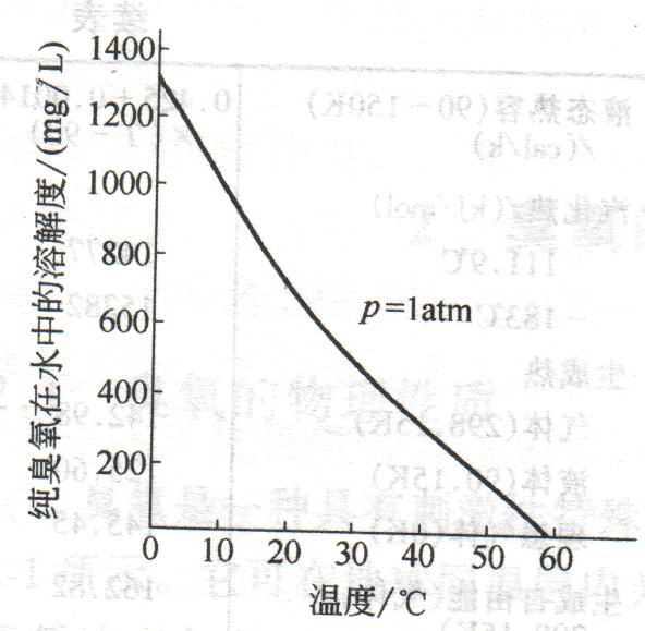 圖2-2 純臭氧在水中的溶解度與溫度的關(guān)系