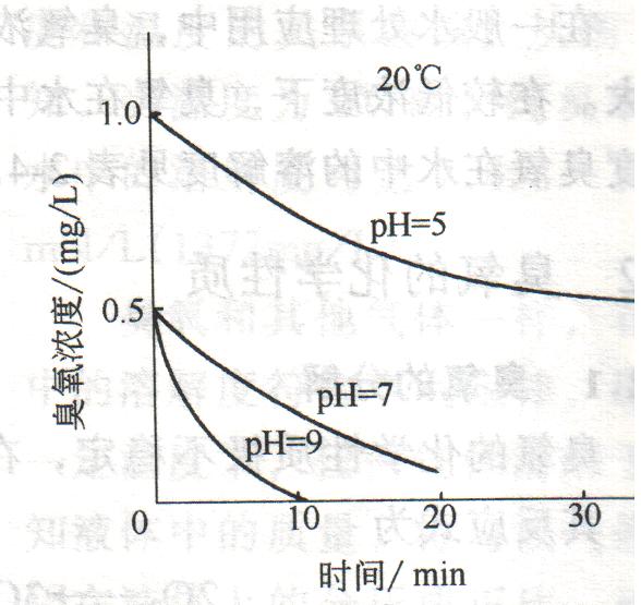 當(dāng)PH值為5時,比PH為7時的水中臭氧不容易分解。