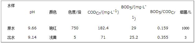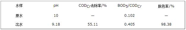 廢水取自東莞某紡織印染廠的實際印染廢水。該印染廠所用染料主要是活性、偶氮染料。印染廢水用100目篩網(wǎng)過濾,去除大顆粒懸浮物,調(diào)節(jié)pH至9.66,臭氧質(zhì)量流量為10.04 mg/min,處理60 min,廢水基本脫色,其出水水質(zhì)見表2。