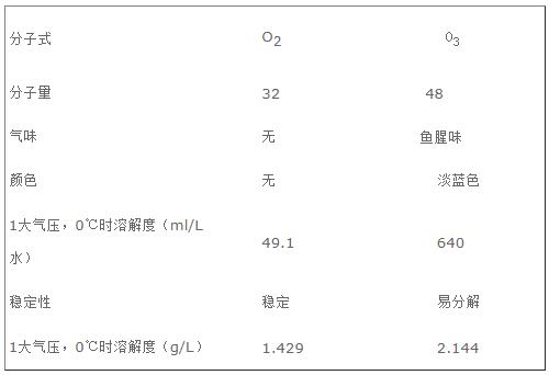 人類通過對臭氧的研究發(fā)現(xiàn),臭氧具有不穩(wěn)定特性和很強的氧化能力。臭氧是由一個氧分子(O2)攜帶一個氧原子(O)組成,所以他是氧氣的同素異形體。臭氧和氧氣的不同之處見下表: