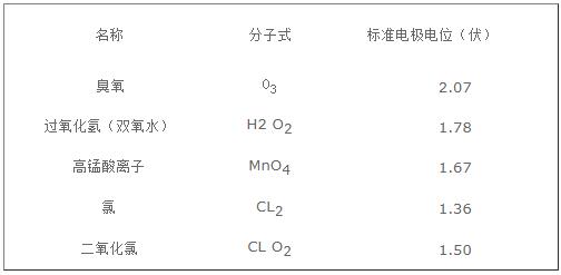 表一,可看出,與氧氣相比,臭氧比重大、有味、有色、易溶于水、易分解。由于臭氧(O3)是由氧分子攜帶一個氧原子組成,決定了它只是一種暫存形態(tài),攜帶的氧原子除氧化用掉外,剩余的有組合為氧氣(O2)進入穩(wěn)定狀態(tài)。臭氧是一種氧化性非常強的物質,其氧化還原電位僅次于F2 。利用它的氧化性,可以在較短時間內破壞細菌、病毒和其他微生物的生物結構,使之失去生存能力。所以臭氧工作中沒有二次污染產生,給人類的環(huán)保需求,這是臭氧技術應用的最大優(yōu)越性。 臭氧的應用主要在人為的滅菌消毒。這主要是臭氧有很強的氧化能力,氧原子可以氧化細菌的細胞壁,直至穿透細胞壁與其體內的不飽和鍵化合而奪取細菌生命,它的作用是即刻完成的,臭氧的迅速滅菌效果決定于它的高還原電位,表二、列出了消毒物質還原電位與臭氧的比較。