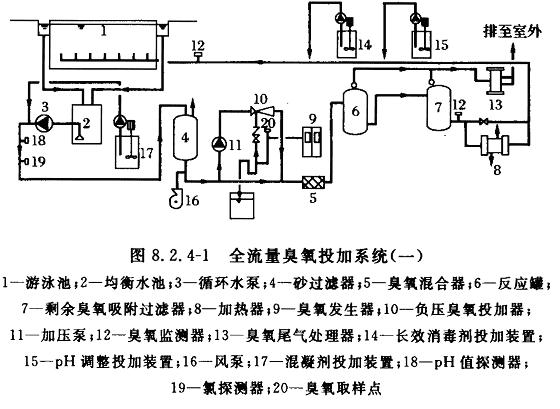 2.人數(shù)負荷較高,泳池衛(wèi)生要求較高的采用全流方式選擇臭氧游泳池消毒系統(tǒng):(見下)