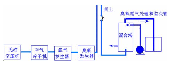 目前在世界范圍內(nèi),純凈水、天然水(山泉水、礦泉水、地下水、污水處理等經(jīng)過(guò)過(guò)濾等工序制成),已普遍采用臭氧消毒;同時(shí)氧化水中的各種雜質(zhì),以達(dá)到凈化水的效果。在自來(lái)水 臭氧凈化應(yīng)用時(shí),國(guó)際常規(guī)標(biāo)準(zhǔn)為0.4mg/L的溶解度值保持4分鐘,即CT值為1.6。污水保持溶解時(shí)間可以略微長(zhǎng)15-30分鐘下表為參考值: 氣水混合連接圖1.(小型氧氣發(fā)生器自帶無(wú)油空壓機(jī),8T水以上時(shí)要另配套無(wú)油空壓機(jī)和冷干機(jī)),臭氧在水處理中主要作用以下方面:
