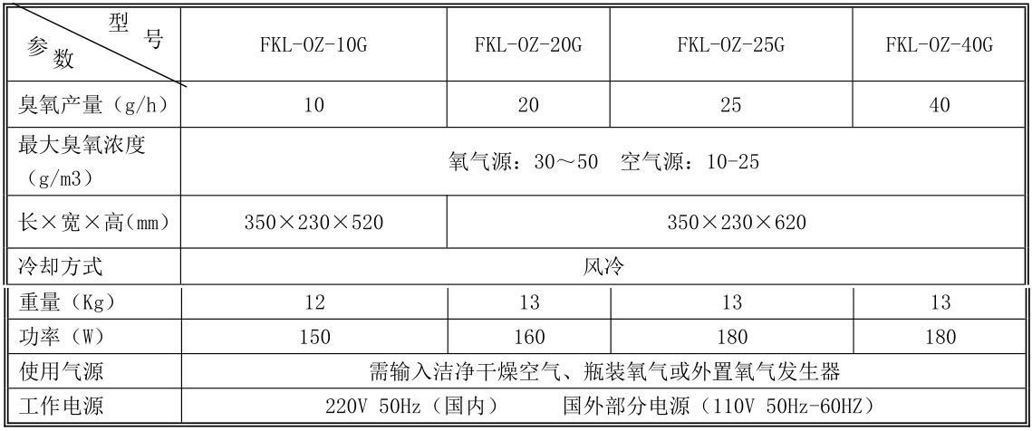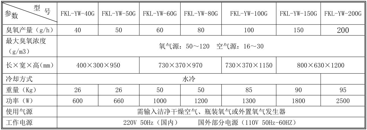 工業(yè)桶裝水、純凈水處理設(shè)備、污水處理、中水回用、空氣殺菌消毒( 食品車間消毒、 實(shí)驗(yàn)室、 冷庫消毒、GMP\HACCP 車間凈化) 、 中央空調(diào) 循環(huán)冷卻水消毒、養(yǎng)殖消毒等技術(shù)參數(shù)、圖表: FKL-OZ-10~40G( 注:以下參數(shù)、機(jī)器圖片可能有適當(dāng)變動 )